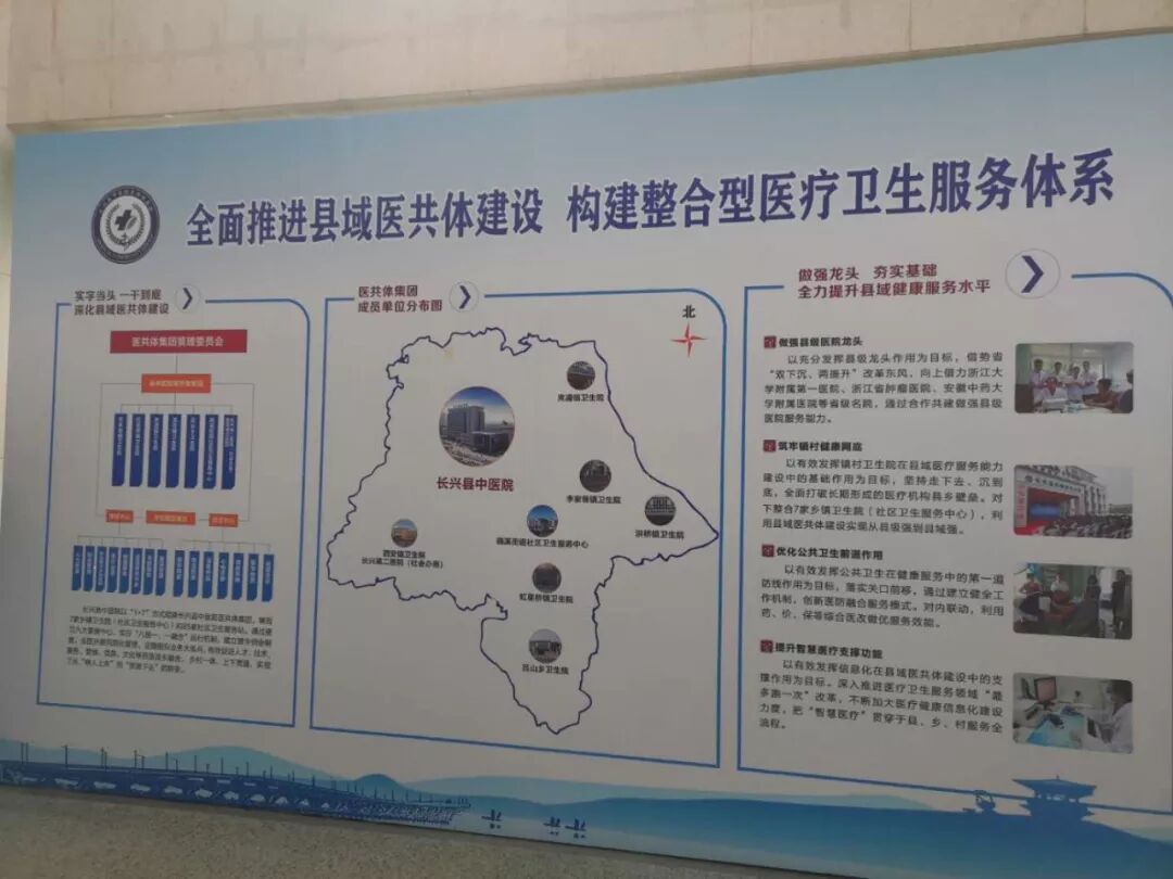 2017年,长兴县以“两个统筹、三个统一、六个不变”原则(即统筹医保支付、统筹人员使用;统一财务管理方式、统一绩效考核标准、统一业务管理要求;单位性质、功能定位、资产隶属、人员关系、财政补偿政策、政府投入方式不变)试点组建长兴县中医院虹星桥镇、长兴县人民医院小浦镇2个医共体。2018年,以县人民医院、县中医院为牵头单位,以“1+8”“1+7”方式在15家乡镇卫生院实现医共体全覆盖挂牌运行。2019年,以现有医共体“1+8”“1+7”形式为基本框架,组建以县人民医院、县中医院为牵头单位的两个医共体集团,县妇保院等机构以专科联盟等形式融入医共体集团。